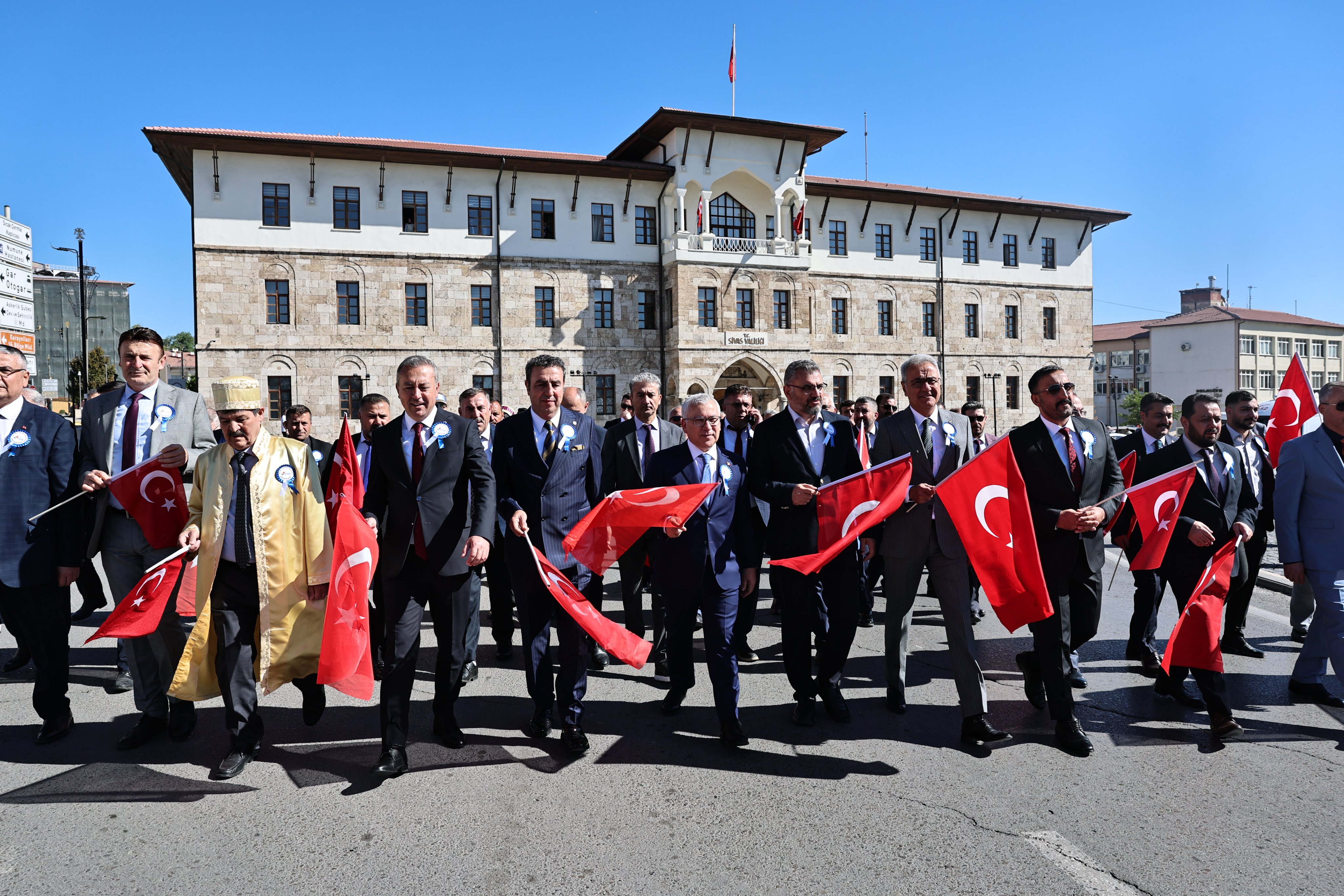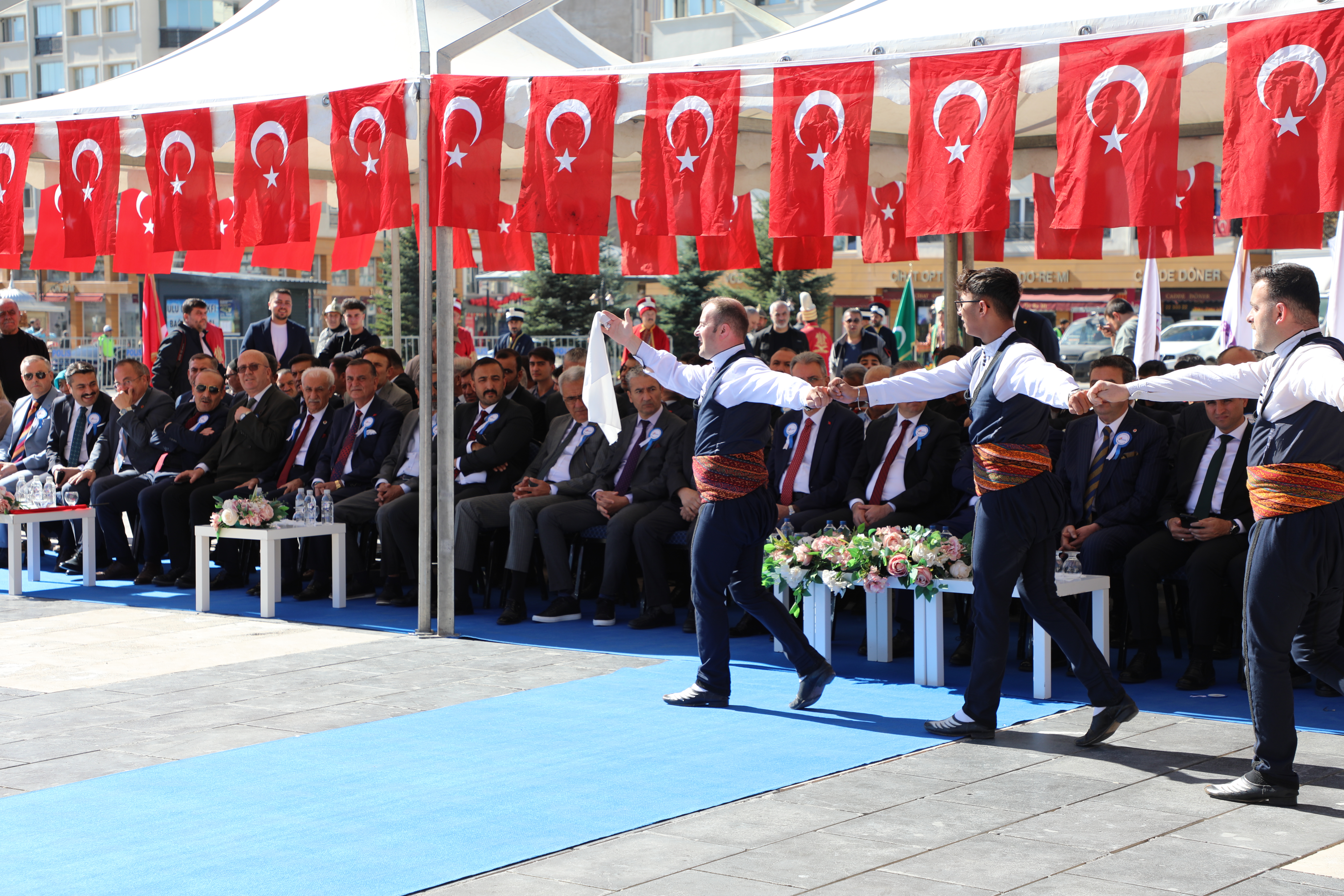 Ahi Emir Ahmet Türbesi önünde Kur’an-ı Kerim tilaveti ve dualarla başlayan program, mehteran eşliğinde kortej yürüyüşüyle meydana kadar devam etti.