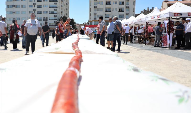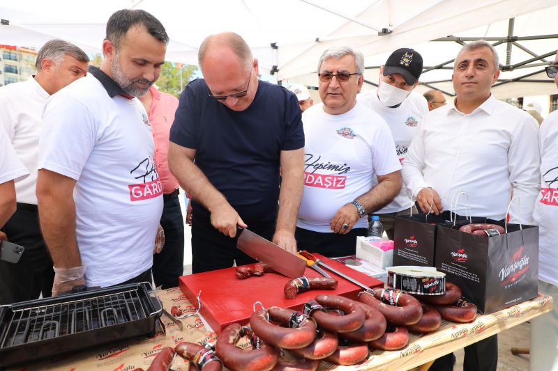 Sivas Ticaret Borsası tarafından, Sivas Valiliği ve Sivas Belediyesi koordinesinde düzenlenen Sivas Gardaşlık Festivali kapsamında özel olarak hazırlanan 58 metre uzunluğunda ve 5.8 cm genişliğinde 100 kg üretilen Sivas Sucuğu sergilenmesinin ardından sucuk üretimi yapan firmalar tarafından mangallarda pişirilerek halka ikram edildi.