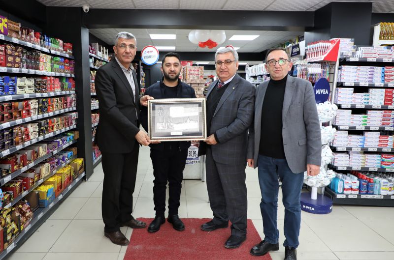 Sivas Ticaret Borsası Başkanı Abdulkadir Hastaoğlu ve Meclis Başkanı İhsan Aksoy ve Yönetim Kurulu Üyesi Ahmet Tarık Günhan, Borsamız Meclis Üyesi Adil Dalkürek'in sahibi olduğu GROSS58 Market’in yeni açılan Mehmetpaşa Mh. Şubesinde Mehmet Dalkürek'e hayırlı olsun ziyaretinde bulundu.
