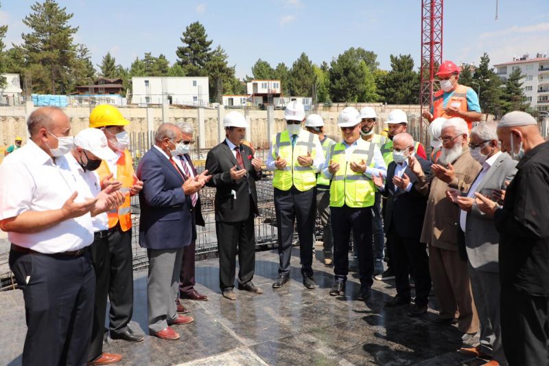 Sivas merkezde yapımı devam eden Merkez Camii ve Külliyesinde incelemelerde bulunan Vali Salih Ayhan ve Belediye Başkanı Hilmi Bilgin ve Dernek Yönetimi çalışmaları yerinde gördükten sonra dualarla demir bağladı.