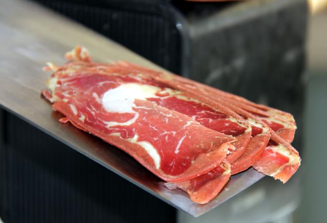 Sivas Pastırmasının gerçek anlamda lezzetiyle, kesimiyle, üretimiyle, kurutulmasıyla Coğrafi İşaret Tescil Belgesi aldığını belirten Başkan Hastaoğlu, “Sivas Pastırması; 2 yaşını doldurmuş erkek dana etinin karıncabaş denilen 1-2 mm boyutundaki yer altı Sivas Kaynak Tuzu ile tuzlanıp doğal hava şartlarında kurutulması ve çemen ile kaplanması suretiyle üretilmektedir. Dilimlenmiş olarak satışa sunulan Sivas Pastırmasının dilim kalınlığı en fazla 2 mm’dir. Sivas Pastırmasında erkek danadan elde edilen sırt ve bonfile eti, öğütülmüş çemen unu ve karıncabaş olarak ifade edilen boyuttaki yeraltı Sivas kaynak tuzu kullanılır. Sivas Pastırmasına karakteristik özelliğini kazandıran bir diğer önemli unsur kurutma işleminin tamamen doğal hava şartlarında yapılmasıdır” ifadelerini kullandı.
