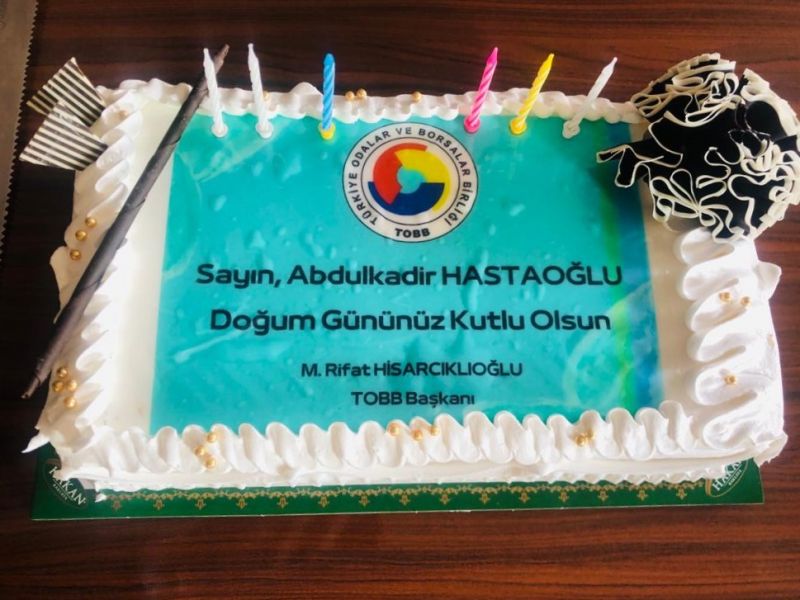 Türkiye Odalar ve Borsalar Birliği (TOBB) Başkanı Rıfat Hısarcıklıoğlu, Sivas Ticaret Borsası Başkanı Abdulkadir Hastaoğlu’na pasta göndererek doğum gününü kutladı.
